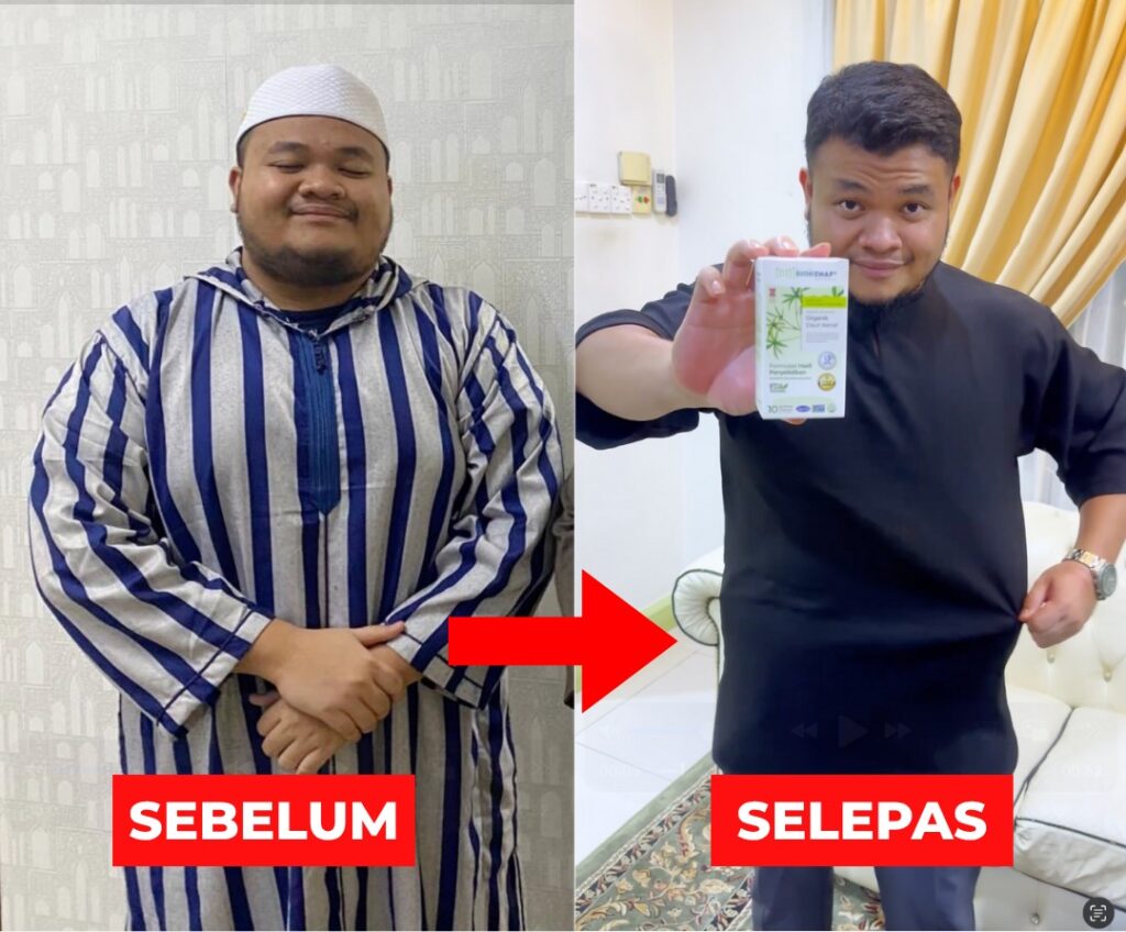 “Berat saya turun 8kg Selepas Amal 3 Kotak, hairan saya, kat mana hilang lemak sebab takde cirit birit, tapi yang saya perasan selera makan saya berubah, buang air besar lawas, paling best! Gout saya eh tibe tibe hilang!” – En. Mustam.